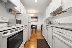Nice & bright TOP floor 2 bed & 1 bath condo in the heart of White Rock. Beautifully & recently updated. Updates include kitchen & bathroom with a large walk in shower, newer sliding glass doors, high-efficiency windows, hard wood in the main living area. Bonus storage room within the unit, big enough for a freezer &much more. Hugh south west facing top floor balcony, with peek a boo view of the ocean & outdoor space for gardening, entertaining & BBQs! Storage locker included that is located near the secure underground parking space. Pro-active strata & well maintained family friendly building. Heat & hot water included in the strata fees. You cant beat this location. Close to everything! Restaurants, shopping, transit, schools, rec centre & walking distance to White Rock Beach.