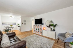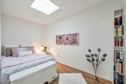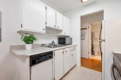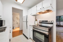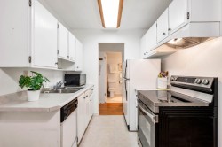 Lovely spacious top floor condo in central White Rock. 2nd Bedroom /den has skylight. Updated w laminate floors, fresh paint, white kitchen w new stove. Level walk to everything: highly desired location w convenient access to shopping & transit. Building is well-maintained, friendly, 55+, no smoking w updated roof, elevator controller & front exterior. Prof managed co-op is run like a strata w large contingency reserve fund for peace of mind. Owners allocated shares in the company that owns the building & land. Monthly fees incl. heat, hot water & water ($349.29/mo). Clean modern shared laundry. One cat allowed. No rentals. Underground parking & locker. Charming move-in ready home.