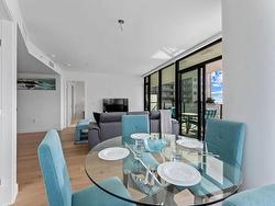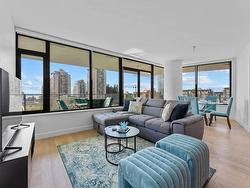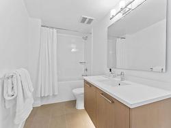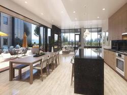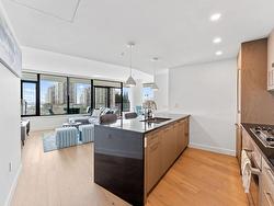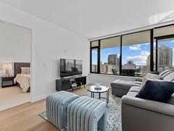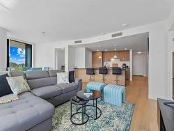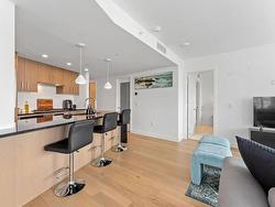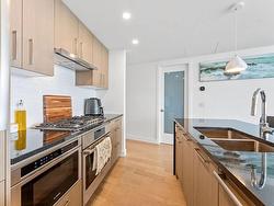 Welcome to Soleil, White Rock’s premier address! This 2-bedroom, 2-bathroom + den "Select Home" offers breathtaking ocean, mountain, and city views from a 433 sq. ft. wraparound balcony. The chef-inspired kitchen features Bosch appliances, quartz countertops, and sleek cabinetry, while 9' ceilings and luxurious finishes add elegance throughout. The primary suite boasts plush carpets and spa-like Grohe fixtures. With A/C, two parking stall, and access to over 8,000 sq. ft. of amenities including a gym, hot tub, sauna, playground, and more, Soleil delivers the ultimate urban lifestyle. Steps from shopping, dining, and the beach.
