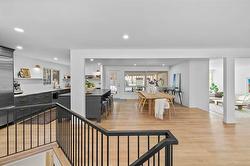 S/S Thurs. Feb. 26, offers Tues. Mar. 3 after 6 pm. Beautifully updated from top to bottom, this solid & straight home offers a modern & inviting open design filled w/natural light. A spacious foyer welcomes you into a dining area large enough for gatherings & garden door leads to a 3-season sunroom & massive outdoor space featuring an entertainment-sized deck surrounded by mature trees. Luxury vinyl plank flooring flows throughout both levels. The chef-inspired kit boasts a large island w/matte quartz counter, soft-close drawers & breakfast bar w/storage. High-end ss appliances, custom hood fan & 4-burner gas cooktop w/grill. Bronze hardware & matching sconces add warmth, while a custom mudroom keeps everything organized. The bright sunken LR showcases a wall-to-wall window & custom feature wall w/ornamental fp. The spacious primary offers a hidden WICC & stunning 5-piece ensuite w/heated floors, soaker tub, large vanity & o/s shower. 2 good sized brs w/organizers & 4-piece bath w/heated flrs. The LL features custom built-ins, flex space for relaxing, gym or working. 4th br & steam shower bath. AT/2. Located on a sprawling 130' x 130' corner lot, steps to Tuxedo Golf Course & Assiniboine Park.