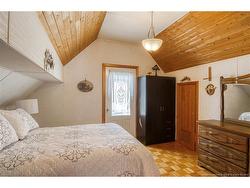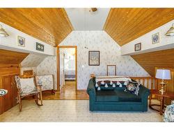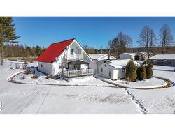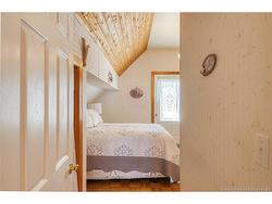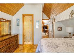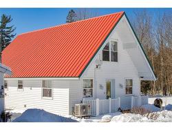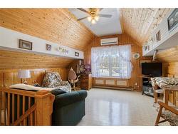 Welcome to this adorable chalet-style retreat, instantly recognizable by its charming red roof and storybook curb appeal. Enter the beautifully landscaped property by way of a paved driveway lined with mature shrubs and colorful perennials, setting the tone for the warmth and care found throughout.Designed for convenient one-level living, the main floor features a spacious primary bedroom and main bath with laundry, the kitchen offers lots of storage and a convenient island for prepping your meals, the cozy livingroom is a great spot to relax after a long day. In-floor heating on the main level and two ductless mini-splits ensure year-round comfort, with an equalized hydro bill of just $225/month.Upstairs, you’ll find a generous bonus room ideal for a den, craft room, or additional bedroom, a 3-piece bath, and a large bedroom complete with a private balcony—perfect for enjoying your morning coffee while watching the horses next door.Outside, the property continues to impress with a two-car insulated garage and a 23' x 14' heated workshop, ideal for projects, hobbies, or extra storage. Enjoy the large deck with gazebo great for BBQ's, entertaining or enjoying nature.Lovingly maintained by its original owner, this cozy, character-filled home clearly reflects pride of ownership and is ready to welcome its next chapter.