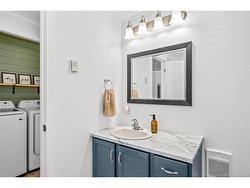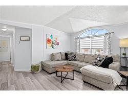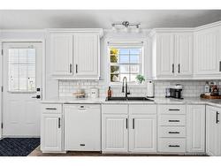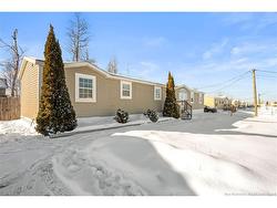 Welcome to 83 Tracadie Drive in Domaine Du Ruisseau! This beautifully renovated and modern mini home offers a bright, stylish interior and a layout that flows effortlessly from inside to out. Step into the stunning white kitchen, open to the dining area, featuring a crisp white backsplash, matching appliances, and sleek black accent hardware. The dining space is filled with natural light thanks to a large sliding patio door. From here, you’re welcomed into the bright living room showcasing a beautiful shiplap feature wall with an electric fireplace and dedicated space to mount your TV, the perfect cozy focal point. On the opposite side of the kitchen, you’ll find a convenient laundry area, the spacious primary bedroom, and a 4-piece bathroom. The primary bedroom offers a sophisticated muted teal feature wall and a large double-door closet. The bathroom includes a stand-up shower and a relaxing corner soaker tub. On the other end of the home, two additional well-sized bedrooms complete the layout. Step outside to a large back deck overlooking a fully fenced backyard complete with a baby barn. The property is beautifully landscaped, features a double-wide driveway, and is ideally positioned facing the road. Move-in ready and sure to impress, this home would be perfect for first-time buyers, small families, or those looking to downsize without compromising on style or comfort. Book your private viewing today!