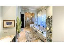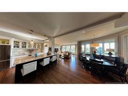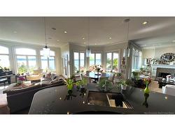This stunning 4-bedroom plus office, 3-bath waterfront home captures the essence of luxury living with absolutely breathtaking views from every angle. With private stairs leading directly to the beach, you can fully immerse yourself in the beauty of the water just steps from your door. The spacious 3-car garage not only features epoxy floors and an EV hookup, but also includes a dedicated garden center with sink—perfect for those who love both elegance and function. The fully fenced grounds are enhanced with a sprinkler system and wiring for a robotic mower, ensuring effortless outdoor living. Inside, both levels are finished to perfection with complete kitchens, high-end appliances, fireplaces for cozy evenings, an integrated sound system, and expansive decks designed to showcase the remarkable views. Heat pumps provide year-round comfort, making every season enjoyable. Ideally located near the Regional Hospital, UNBSJ, and all amenities, this home is a rare opportunity to embrace luxury, comfort, and the magic of waterfront living.