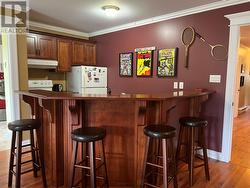 This stunning home offers ease of single-level living with a spacious layout. It features a large entryway and a beautiful foyer with a propane fireplace, leading to an open-concept living room, dining room, and kitchen. The kitchen boasts custom-built cabinets, a large island, a countertop range with a pot filler, and a double wall oven. The primary bedroom includes a walk-in closet and a full ensuite with a whirlpool tub. There are two additional bedrooms, a three-piece bath with a corner shower, an office with built-in shelving, a storage room, a large rec room with a wet bar and pool table, and a generously sized laundry room with folding table and lots of storage space. The home is wheelchair accessible and equipped with 200 AMP electrical service, a humidex system, electric heat. Outside, you'll find a double-paved driveway, a 16x20 storage shed, a 16x16 rear deck with storage space beneath, and an 8x10 deck off the rec room. Basement has a 14 X 24 storage room and access to crawlspace. The sale includes all appliances, including a fridge, countertop range, double wall oven, dishwasher, microwave, wine fridge, washer, dryer, bar fridge and stove, as well as the pool table and window coverings. Seller offering a $2,500 decorating bonus on successful closing which can be used to personalize your new home with new furniture or stylish decor of your choice! (id:27)