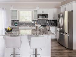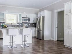 This beautifully designed 3-bedroom, 2-bathroom bungalow is located in the desirable LaHave Heights II in Bridgewater and offers the perfect blend of modern comfort and traditional charm. A formal entry with a walk-in closet welcomes you into the home and opens into a bright, spacious living room. The open-concept layout connects the kitchen and dining area in a functional flow that’s ideal for hosting family and friends or simply enjoying day-to-day living. The exterior makes a bold first impression with black windows, a black trim package, architectural peaks, and accent siding - design choices that give this home standout curb appeal. Inside, you’ll find a number of thoughtful upgrades, including 9' ceilings that enhance the airy feel of the space, granite countertops in the kitchen and bathrooms, and upgraded Maxx U-Tile in both bathrooms. The kitchen features white birch cabinetry paired with modern hardware, creating a clean and stylish look throughout. A mudroom with laundry room provides added convenience for everyday living. The total square footage of the home, including the attached storage area, is 1,792 sq ft. Please note: due to the surface mount foundation, the garage is intended for storage only and is not suitable for vehicle parking, however it is possible for an engineered floor to be installed which would allow vehicle storage. Rear deck to be completed by vendor prior to closing. The site fee is $440/month (includes sewer).