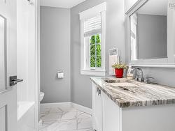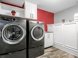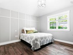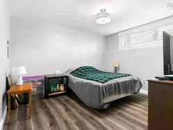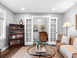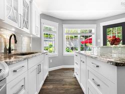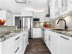 This beautifully updated bungalow, fully renovated in 2019, is nestled in a sought-after neighbourhood on a cul de sac. It offers stylish comfort on a meticulously maintained private lot. Step inside to find stunning hickory hardwood flooring throughout the main level, a cozy yet spacious living room, a bright dining area, and a modern kitchen featuring granite countertops, a center island with breakfast bar, and an open-concept design perfect for entertaining. The main floor also offers three generous bedrooms, including a primary suite with a large closet with custom built ins and full ensuite bath featuring a custom vanity with double sinks and glass shower with rainforest shower heads & Italian marble. An additional main level full bath features the same granite countertops as the other bathrooms. The fully finished lower level features a large family room with a propane fireplace, two additional bedrooms, a full bath, a den or office, laundry room, storage room, large custom built walk in closet and utility room—with convenient walk-up access to the garage. You can also enter through the double attached garage, where you will be welcomed by a thoughtfully designed mudroom, offering a practical space for the organized storage of outerwear and daily essentials. Outside, enjoy a large, private lot adorned with lush trees, vibrant shrubs, and thoughtfully selected plants—all beautifully maintained for exceptional curb appeal. The stone patio and matching stone retaining wall perfectly compliment the mature perennial garden. Don’t miss this move-in-ready home in a peaceful and well-established community. Close to English and French elementary and junior high schools.