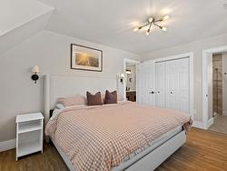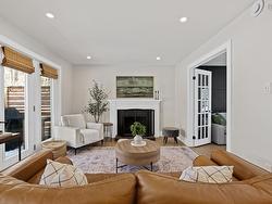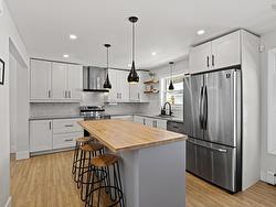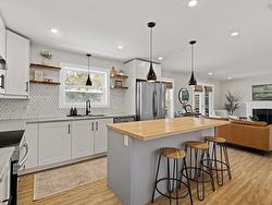 The complete package, in a location that never goes out of style. Thoughtfully renovated and filled with warmth, this extensively updated four-bedroom, four-bath two-storey home offers the rare balance of charm, functionality, and modern design, all set within the established and highly convenient Wedgewood neighbourhood. Inside, you’ll immediately appreciate the natural flow of the main floor, open enough for effortless entertaining, yet still offering cozy moments around the fireplace. The kitchen is truly the heart of the home, complete with a beautiful sink window overlooking the backyard, a functional central island, and large patio doors that connect indoor living seamlessly to the private rear deck and yard. Step outside to a fully fenced, very flat backyard, ideal for kids, pets, entertaining, or creating your own summer outdoor retreat, offering both privacy and exceptional usability. Upstairs, three generous bedrooms are complemented by two beautifully renovated bathrooms featuring custom tile work, updated fixtures, elegant vanities, and thoughtful storage throughout. The primary suite offers built-in drawers and a calming, refined feel, a true retreat at the end of the day. The lower level continues to deliver with a spacious fourth bedroom (ideal for guests, home office, or flex space), a full 3-piece bath, and a comfortable rec room with convenient exterior access to the backyard. Practical upgrades add peace of mind, including new roof shingles, new front and back decks, new front stairs, widened and sealed driveway, and an indoor fiberglass oil tank. Storage is abundant throughout with multiple large closets, under-stair storage, utility space, and an exterior shed.
