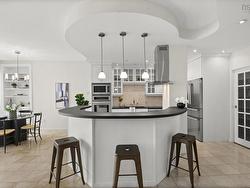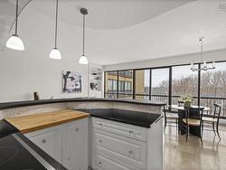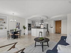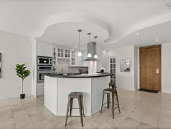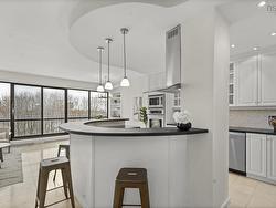 **Live Where Halifax Does Business — The Carlyle** Step into the downtown lifestyle without sacrificing space, comfort, or character. This 2 Bedroom 2 Bath residence in **The Carlyle** offers something increasingly rare in Halifax: a spacious, elegantly designed condo tailored for professionals who want to live well, entertain often, and walk to work — not squeeze into the micro-units dominating new construction condo market. From the moment you enter, the scale impresses. Nearly 9-foot ceilings and a oversized 8-foot entrance door set the tone, while a wall of expansive windows floods the open-concept living space with natural light. The redesigned floor plan flows effortlessly, built around a chef-inspired kitchen crafted for both cooking and entertaining. A semi-circular centre island anchors the space, complemented by wall-mounted oven and microwave, abundant cabinetry, generous seating, and a walk-in pantry. A dedicated dining area and spacious living room make hosting effortless. The primary suite is a retreat of its own — oversized and refined, featuring double French doors leading to a Hollywood-style walk-in closet complete with seating area, illuminated mirrors, and boutique-style lighting, seamlessly connecting to a large private ensuite bath. A second bedroom and full bath offer flexibility for guests, home office, or both. Throughout the home, custom built-ins and elegant wall sconces add warmth and personality rarely found in newer builds. Every detail speaks to quality and timeless design. Ownership here also includes underground parking, storage locker, car wash bay, visitor parking, on-site superintendent, plus convenient access to the building’s gym and common lounge. This is downtown living for those who value space, character, and prestige — a refined alternative to the compact condos now filling the skyline. Walk to work. Entertain with ease. Come home to class. Welcome to elevated living at The Carlyle.
