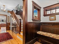 Nicely maintained and approximately 90 years old, this charming character home blends timeless appeal with modern conveniences. Four bedrooms and two bathrooms, including a main bath with elegant marble tile, offer comfortable family living, while the updated kitchen and working fireplace add warmth and style throughout. The walk-out basement features a self-contained rental apartment, perfect for additional income. Enjoy outdoor entertaining on the recently updated backyard deck, with a wide lot providing plenty of space for play or gardening. Additional practical features include off-street parking, a separate garage, and a roof just 12 years young - and the furnace was just replaced. Located within one of the area’s most desirable school zones, this home combines character, functionality, and opportunity in a highly sought-after setting.