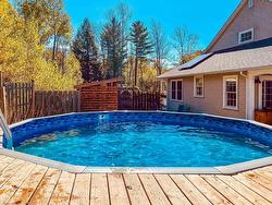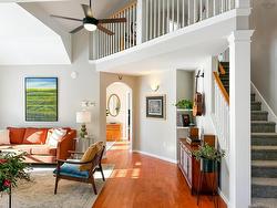 Nestled in one of Kentville’s most prestigious subdivisions, this beautiful home stands out for its exceptional setting and the copious natural light that enhances its main living spaces. Within walking distance to Kings County Academy, the recreation center, and fitness trails, it offers both convenience and an elevated lifestyle. A bright foyer with an adjacent home office leads to a stunning living room with vaulted ceilings and an updated kitchen featuring maple Decoste cabinetry and soapstone countertops. The open living and dining areas create an easy flow for entertaining, complemented by a charming balcony ideal for morning coffee. The main floor also includes a 2-piece bath, dedicated laundry room, and a cozy family room with a woodstove. Outstanding curb appeal is complemented by a covered front deck, thoughtfully arranged outdoor areas, and an above-ground pool. Upstairs, the sunlit primary suite features a walk-in closet and 5-piece ensuite, accompanied by two additional bedrooms and a full bath. The partially finished lower level offers the fourth bedroom, a family room, and ample workshop/storage space. A double garage, woodshed, double paved driveway, energy-efficient ducted heat pump, and cost-saving solar panels complete this impressive home—an exceptional opportunity in a truly distinguished neighborhood.