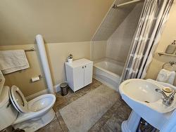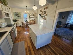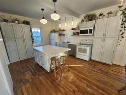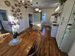 This home welcomes family, and she's such a beauty I guarantee she will not disappoint. Recently upgraded where it counts - kitchen, primary bedroom, ensuite bath, and with new central heat pump and electrical upgrade. Also with recent touches throughout the home this is a great place for you and your family. And you can bring even more family - we have a completely self contained in-law suite! Perfect for the in-laws, the oldest child, or a tenant to help pay YOUR bills! There is ample space throughout the home with a fantastic sunroom that catches the late afternoon/evening sun, a main floor primary bedroom with ensuite, a beautiful and new kitchen, large living room and a welcoming foyer as well on the main floor. Heading to the second level we find three more bedrooms, a den/office area, the laundry up where the bedrooms are, and another full bath. Your family will fit here, guaranteed. The in-law suite, with its own entrance, features a full kitchen, a dining nook, 3 piece bath, living room and bedroom - private space, perfect for the in-laws or long term guests, children, tenants. Let's not forget the attached barn too - great space for storage, and features a full loft as well. Adding to this impressive home is the beautifully landscaped property, paved drive and outdoor patio deck. Sitting on a private and peaceful .34 of an acre you would almost never know you're in the heart of small town life. And you are - conveniences are a quick walk away, as is school. Drop in to see this beauty, she will not disappoint!