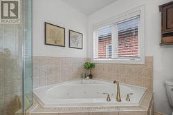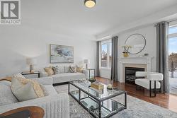 This fabulous home backs onto greenspace and is linked at the garage only providing all the privacy and benefits of living in a detached home. This stunning home boasts 1882 sq feet above grade and 830 sq feet of basement. Nicely upgraded & tucked away on a quiet crescent between the 401 & 407 & just a few minutes drive to major conveniences like Costco, Walmart, Metro, Cineplex, Tons of restaurants, Pickering Casino, Lots of walking trails, Greenwood conservation, Deer Creek Golf Course. This house showcases an open concept layout great for large families & entertaining ...The unique layout for this model has the kitchen open to the dining area and living room. The main floor has tons of light with large windows & patio doors, 9 foot ceilings, crown moulding, Pot lights, Hardwood floors on main and upper, gas fireplace, direct access to garage, walk out to backyard with no neighbours behind. The expansive eat in kitchen offers a breakfast bar island, granite counters, gas stove, stainless appliances, under mount sink. Oak staircase welcomes you to the second floor with stunning hardwood and a great layout. Primary bedroom at the back of the house overlooking the backyard/ greenbelt for added privacy, with your own bath and walk in closet, set well away from the rest of the bedrooms on the second floor, other bedrooms are great sizes with large closets, All rooms have wooden blinds as well The basement is partially finished with a rec room at the rear with pot lights and large windows. The rest of the basement provides a great canvas to finish as you like. Front and rear yards have been landscaped with stone and interlock, Also rough in for bathroom in basement near gym set up. (id:27)