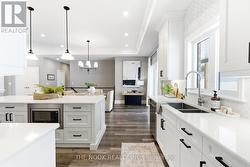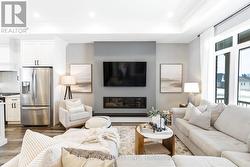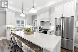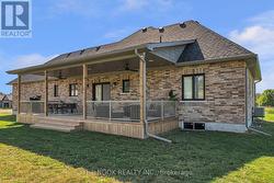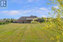 Set In A Quiet, Sought-After Estate Community In Grafton Built By Stalwood Homes And Just Minutes To Hwy 401, This Custom Brick And Stone Bungalow Sits On 1.72 Acres And Delivers The Perfect Blend Of Scenic Country Setting And Everyday Convenience With Municipal Water And Affordable Natural Gas Heating. Bold Black Accents And A 655 Sq Ft Oversized Garage Create Striking, Polished Curb Appeal. Inside, 10 Ft Ceilings Run Through The Main Living Space, Enhancing The Open, Light Filled Layout Across The Kitchen, Dining And Living Room. A Custom Built-In Electric Fireplace Wall Adds Strong Architectural Presence And A Sleek, Modern Focal Point. The Kitchen Is Fully Custom With High End Cabinetry, Quartz Counters, Premium Appliances And A 9 Ft Island Designed For Hosting And Everyday Living. Just Off The Kitchen, A Beautifully Planned Mudroom With Pantry, Laundry, Built-In Storage And Bench Seating Connects The Garage And Backyard, Creating A Functional Yet Stylish Hub Of The Home. The Primary Bedroom Features A Walk-In Closet And A Beautifully Designed Ensuite With Double Sinks, Glass Shower, Heated Floors And A Heated Towel Bar. A 4 Pc Bath Serves The Additional 2 Bedrooms On This Level. The Finished Basement Continues The Same Design-Forward Feel With A Spacious Family Room, Fireplace, Dedicated Kids Zone With Built-In Rock Climbing Wall, A Generous 4th Bedroom With Large Windows And A Brand New 4 Pc Bath. The Backyard Showcases A Covered Porch Built Into The Roofline, Creating A Seamless Indoor And Outdoor Living Experience. Built-In Bluetooth Speakers At The Rear Elevate Everyday Living And Entertaining. This Is A Thoughtfully Designed Estate Home With A Modern Yet Timeless Edge, Offering Space, Privacy And Quick Access To The GTA From A Peaceful, Well Connected Setting In The Heart Of Grafton. (id:27)