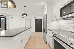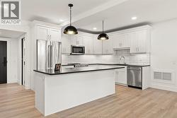 2.99% FINANCING NOW AVAILABLE FOR A 3 YEAR TERM. CONDITIONS APPLY. WELCOME TO THE 1173 SQ FT PRIVATE MODEL AT THE HIGHLY ANTICIPATED LOFTS AT ST. ANTHONY. ENJOY THE PERFECT BLEND OF OLD WORLD CHARM & MODERN LUXURY WITH THIS UNIQUE LOFT STYLE CONDO. FEATURING GLEAMING ENGINEERED HARDWOOD FLOORS, QUARTZ COUNTER TOPS IN THE SPACIOUS MODERN KITCHEN FEATURING LARGE CENTRE ISLAND AND FULL APPLIANCE PACKAGE. 1 SPACIOUS PRIMARY SUITE WITH WALK IN CLOSET AND BEAUTIFUL 4 FC BATHROOM WITH CHEATER DOOR. IN SUITE LAUNDRY. BRIGHT AIRY LIVING ROOM WITH PLENTY OF WINDOWS. PRIVATE 295 SQ FT WALK OUT TERRACE WITH BBQ HOOK UP. THIS ONE OF A KIND UNIT FEATURES PLENTY OF ORIGINAL EXPOSED BRICK AND STONE. SITUATED IN A PRIME AMHERSTBURG LOCATION WALKING DISTANCE TO ALL AMENITIES INCLUDING AMHERSTBURG'S DESIRABLE DOWNTOWN CORE. DON'T MISS YOUR CHANCE TO BE PART OF THIS STUNNING DEVELOPMENT. (id:27)