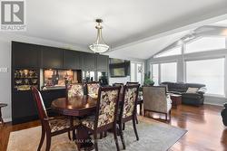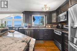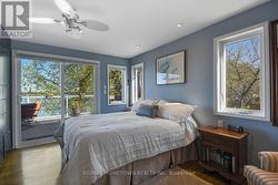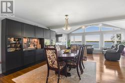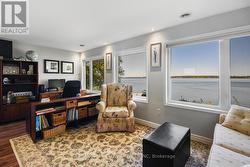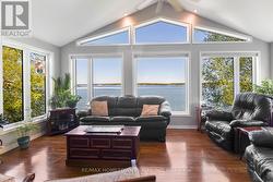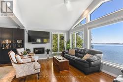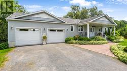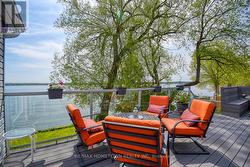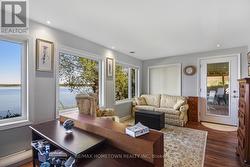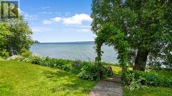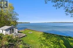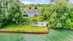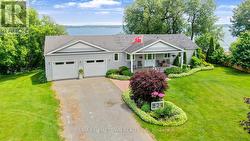 Welcome to 1435 County Road 2, a rare find on the beautiful St. Lawrence River! If you're looking for peaceful waterfront living, step inside and be instantly greeted with a full view of the river through a wall of large windows. Open-concept living and dining areas. The built-in wall unit includes a buffet, china cabinets, lighting, and lots of storage. Custom walnut kitchen with a generous island, including a prep sink and seating, designed for creating great meals and gathering with friends. Just off the kitchen is a 3-piece bath with a walk-in shower and a separate laundry room with a built-in ironing board. 2-car oversized garage with workshop area.The primary bedroom offers built-in drawers and cupboards and a spacious walk-in closet. Access the large deck from the living room or bedroom. Enjoy quiet mornings with coffee and an expansive river view, and watch the ships go by. Soak in the river views sitting on the deck, with a railing of glass panels and a dining area with built-in seating and storage cupboards, ideal for year-round BBQs. The lower level offers the same large windows as the main-level living room and includes two additional bedrooms, a 4-piece bath with a large soaker tub, a large walk-through storage room, and a big flexible room that can be used as a family room or office.The view may be too distracting to get much work done! Walk out to a covered patio and follow the stairs to the river to a 100 ft wide lawn, a cabin for sleeping,storing kayaks,swimming and fishing supplies. Attached is another deck for dining or lounging. Beyond the cabin is a beach area. Wildlife abounds; every day when you see the resident bald eagle sitting on its perch in the trees, ready to dive for a fish. Sometimes you'll be greeted by a heron standing on the seawall or at the beach. Watch ships and sailboats float by on the mighty St. Lawrence. Surrounding the home are vibrant, low-maintenance perennial gardens and fruit trees (apple, pear, plum,cherry, saskatoon). (id:27)