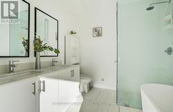 Set on a rare RAVINE lot with 2251 Sf and 600 Sf builder finished basement of total 2800 Sf living space, This NY Style modern townhome features 4 bedrooms and 5 bathrooms, a private backyard to forest, 2 parking space and roughly 10 visitor parking lots. This home offers exceptional privacy and a picturesque natural backdrop that brings a sense of calm and convenience to everyday life. Thoughtfully designed across four levels, it features 10 feet on the main floor of kitchen, living/dining room, 9 feet on the bedrooms, 8.7 ft in the basement, all smooth ceilings --- creating a Luxury, Spacious, and Airy atmosphere throughout. Builder upgraded basement completed w an investment of $ 25,000, adds an additional bedroom and a full bath room, ideal for guests or in-laws,. Modern kitchen is enhanced with a $5000 upgraded water fall central island, combining clean lines and refined texture to stride a perfect balance between elegance and functionality. Outdoor living is equally captivating, with 627 Sf of roof top terrace, a perfect extra space for hosting a party, family gatherings, sun bathes, or a space garden to enjoy quiet moments in nature. Complemented by an active 7 year Tarion New Home Warranty, this residence offers not only style and comfort, but also peace of mind and lasting quality. This is the kind of home that reveals its value gradually-- the more time you spend here, the more sense it makes --- calm, secure, and entertaining. (id:27)