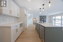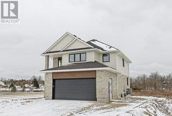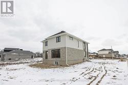 Brand-new 4-bedroom, 2.5-bathroom home by MP Custom Homes situated on a premium corner lot in Aylmer, just 10 minutes to St. Thomas and an easy commute to London, this property backs onto environmentally protected land and offers scenic pond and nature views. The exterior showcases brick and hardboard finishes, a covered front porch, and a double garage drywalled and painted with inside entry, automatic opener, and included asphalt driveway. Inside, the main floor features a bright grand foyer with closet, 8' ceilings, open-concept design, and quality LVP and tile flooring. A mudroom off garage with closet connects to a stylish 2pc bath with quartz vanity. The custom kitchen boasts quartz counters, island with sink, pantry, stainless steel dishwasher and rangehood, and opens to a dining area with patio doors. The living room with pot lights highlights a shiplap finished electric fireplace and panoramic backyard views. Upstairs, the spacious primary retreat includes a walk-in closet and 4pc ensuite with quartz double vanity and tiled shower. Three additional bedrooms with closets, a full bath with double vanity sinks and tub/shower, and a laundry area with electric dryer hookup complete the second floor. The lower level offers potential for a family/rec room, 5th bedroom, 4pc bath, and storage. Additional value: Tarion Warranty, HST (rebated to builder), sod, and asphalt driveway included. Don't miss this opportunity to own a new and spacious home with spectacular views and excellent location! (id:27)