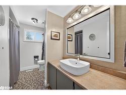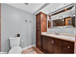 A rare true 5 bedroom home, 4 car attached garage, 6 car driveway, fully owned 10K solar system, in ground swimming pool set on a peaceful, coveted street in the welcoming Allandale Heights neighbourhood. Bathed in natural light, it is truly a rare offering. Less than 2 km to groceries, highway access, beach, and free boat launch; walking distance to lake, 3 great schools, rec center, sports courts, playground, trails, convenience shopping, outdoor ice rink and tobogganing, this home and location offer no shortage of enjoyment. The expansive, low maintenance property with useable space far exceeding the legal description, features beautiful mature trees, perennial plantings all around, a balcony from which you can view the fireworks over Kempenfelt Bay. A 2-tiered backyard oasis measuring 80 ft across the back with in ground swimming pool, dining patio, privacy fence, custom railings, pool shed with contents and D.O.T. furniture. Inside you will find a warm, bright and comfortable environment. Plenty of space to be together or separate with 2500+ square feet. This traditional layout offers a WETT - certified wood - burning fireplace...think holidays and s'mores... Additional large family room/ rec space in full height, dry basement plus open concept, dining/kitchen/family room and a formal living room complete the entertainment spaces. Upstairs you will find 5 bedrooms. The large, private primary suite with 2 closets and spacious marble walk-in shower is separated from the other bedrooms/bath for ultimate relaxation. ESA certified electrical upgrades, quartz kitchen counters, energy star appliances are only some of the many bonuses to be found at this meticulously maintained property. 4 car garage plus new 6 car driveway allow plenty of free legal storage for boats, RVs, toys and cars. Note: the lighting in some photos does not highlight the warmth and brightness of this lovely, move-in ready, family home.