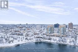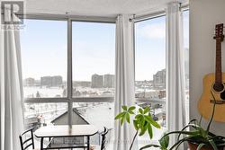 UTILITIES INCLUDED IN CONDO FEES! This beautifully updated 1-bed + den, 1-bath condo offers south-west exposure with fantastic views of Kempenfelt Bay, the marina, and downtown Barrie. Large windows flood the space with natural light, showcasing stunning sunsets and the city lights at night. The 775-square-foot unit features hardwood floors throughout the living room and den, with vinyl flooring in the spacious bedroom. A newly renovated bathroom elevates the space with a modern tub, toilet, vanity, and gorgeous tile work that seamlessly flows into the foyer. The den is perfect for a home office or hobby space, and the unit also offers convenient in-suite laundry. Included with the unit are one underground parking space and a storage locker. Building amenities feature an indoor pool, sauna, hot tub, gym, and a party/games room with monthly events. Condo fees cover heat/central air, hydro, water, building insurance, parking, and common elements, with on-site management, a superintendent, dual elevators, and visitor parking. Located just steps from waterfront trails, shopping, restaurants, and transit, this is downtown Barrie living at its best. (id:27)