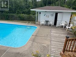Tucked away on a cul-de-sac in sought -after West Park Village, this 5 bedroom, 2 bath home offers a perfect blend of comfort and lifestyle. The back yard is private with no neighbors behind, in the spring and summer there is plenty of wild life to be seen and heard. The backyard is a private oasis with inground pool, outdoor lighting for a midnight swim and a separate fenced area provide safety for children or pets. Large deck off the kitchen allows for easy backyard BBQ's for friends and family. Added bonuses include a hydro powered workshop/shed and pool change room. Well loved and maintained by the same family since 1991 with thoughtful updates throughout, make this a true gem in a family friendly neighborhood with excellent schools. Shingles 2017, A/C motherboard replaces approx 3yrs ago. Furnace & A/C were recently serviced. Pool liner 2005. Pool & equipment are "AS IS" everything was in working order when closed by RCF Pools. Approx costs HWT $75.24 quarterly, Hydro $75-85, Gas $42-150, Water $160-175. Home is carpeted so chances are, you will want to replace the flooring, paint to suit your style and add some new light fixtures to make it yours. (id:27)