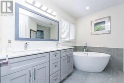 Welcome to this stunning, move-in-ready home situated in a highly sought-after Brampton neighborhood, surrounded by top-rated schools and scenic trails around a tranquil pond. Enjoy unbeatable convenience with Trinity Common Mall, transit, movie theatre, and places of worship all within walking distance. Just 5 minutes to the hospital and 4 minutes to Hwy 410.The main level features pot lights throughout, separate living and family rooms, and a fully upgraded kitchen (2024) showcasing quartz countertops, upgraded cabinetry, and elegant 24" x 24" white marble like tiles. The upgraded powder room also includes a quartz countertop, adding to the home's modern appeal. Upstairs offers three spacious bedrooms, two full bathrooms, and a second-floor laundry room for added comfort. Laminate flooring runs throughout the second floor. The large primary bedroom includes a beautifully upgraded EnSite with a luxurious 5-piece bathroom. The finished basement is ideal for extended family or rental potential, featuring a large living room, one bedroom, a 4-piece washroom, kitchen, and separate laundry area. Step outside to an immaculate backyard with a large deck, perfect for family gatherings and entertaining. A concrete walkway connects the driveway to the backyard, adding both functionality and curb appeal. (id:27)