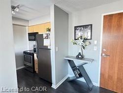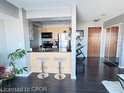 Welcome to Mattamy's 'Rhythm' Building, a cutting-edge, contemporary building only a short distance from Brampton downtown! With a stunning 1 bedroom 1 washroom unit and a surprising amount of open-concept living space, kitchen with breakfast bar into the dining room large living/dining room with large windows and patio door to balcony with great views, 4 piece bath with porcelain tile floor, quartz counter top and soaker tub, large walk in closet in master bedroom, excellent flooring throughout, this unit is in move in condition and immaculate. This urban-style unit is expertly designed in a contemporary style with lots of natural light Building Amenities includes Large Gym, Yoga Room, Party Room, Kindergarten School & Day Care Centre on the Ground Floor of the Building. Conveniently located, just a 3 mins walk to Peel Memorial Hospital. Proximity to the GO Station, transportation, and plenty of services like grocery stores, restaurants, schools, libraries, 24-Hours Shoppers Drug Mart, right outside your door. Being close to Highways 410 and 401 makes traveling and commuting easy. Feel comfortable and secure living in this building because of its round-the-clock security. For first-time buyers or investors seeking a contemporary, conveniently located home with amazing views and all the amenities of city living, this unit is ideal. Room sizes are approx. & irreg.
