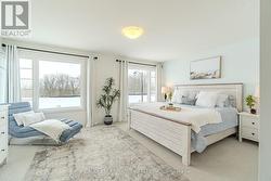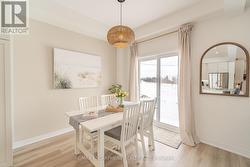 This exceptional freehold (no condo fees) end-unit townhome, built in 2025 by Losani Homes, features the Ambrosia Model with over 1,700 sq ft of refined living space. Encircled by nature and bordered by the Nith River, it offers an unmatched lifestyle. Trails at your doorstep invite canoeing, kayaking, hiking, fishing, and dog walks. Stroll through family-friendly Lions Park along the river past festivals, live music, the outdoor pool, splash pad, ball diamonds, then cross the rustic bridge into the charming downtown core to browse Wincey Mills Marketplace for fresh ingredients, coffee, fresh flowers, stop at Paris Beer Co., and wander home along the river. Striking curb appeal with dramatic dark trim, oversized windows, wood accents, modern glass door, and a large driveway to the double insulated garage. Detached homes planned behind and across the street enhance privacy and long-term value. Inside, the open-concept main floor with generous layout is perfect for entertaining, featuring shaker-style white cabinetry, quartz countertops with a statement island, designer backsplash, under-cabinet lighting, pot lights, soft-close cabinetry, fully tiled shower surrounds with niche and frameless glass, and huge windows that flood the space with light. Upstairs, the massive master suite features large windows with stunning views of the Nith River Valley, a spacious walk-in closet, and a luxurious ensuite. Two additional bedrooms, laundry, and open space complete the upper level.Additional highlights include keyless entry, extreme lookout basement window, upgraded garage insulation, high-end LG appliances, r/o water system, humidifier, central air, garage door opener, and custom window coverings. Sod and a future deck are yet to be completed, allowing personalized outdoor space, while a proposed park just down the street adds appeal. Expertly built with superior soundproofing, this home offers a level of privacy rarely found in townhome living. (id:27)