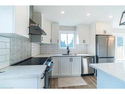 Charming 3 bedroom home w/income potential in desirable Brantford neighbourhood.Boasting laminate flooring throughout the bright and airy main floor, spaciousliving room w/large window & cozy fireplace, perfect for relaxing. Walk into theradiant dining room combined w/kitchen area, ideal for entertaining and casualdining! Kitchen features pot lights for ample lighting and a modern touch. Masterbedroom retreat with walk-out to balcony - enjoy your morning coffee or eveningsunsets. Two additional generous bedrooms w/plenty of natural light. Spaciousbasement with separate entrance - easily convert to inlaw suite or rental apartmentfor extra income! HVAC, roof & washer & dryer all 3 years new. Don't miss out -schedule your private viewing today!