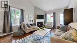 Tucked away on a quiet court in desirable West Brantford, this beautifully updated 3-bedroom, 2.5-bath end-unit freehold townhouse offers comfort, style, and peace of mind—truly better than new. The main floor primary suite is a standout feature, complete with a walk-in closet and a renovated ensuite bathroom, perfect for easy one-level living. The main level also includes a convenient 2-piece powder room, dining room, kitchen, main floor laundry, and a bright living room with walk-out to a private backyard deck, ideal for relaxing or entertaining. Upstairs, you’ll find a spacious family room, two additional bedrooms, and a 4-piece bathroom, providing plenty of space for family or guests. The full unfinished basement offers abundant storage and future potential. Extensive updates add exceptional value and long-term reliability, including a new roof with heat element to prevent ice buildup, oversized rear eavestroughs, and upgraded attic insulation (all 2025). Additional improvements include a new garage door and opener (2024), front windows replaced in fall 2024, primary ensuite renovation and third bedroom addition (2023), and a shared fence replaced in 2025. This move-in-ready home combines thoughtful upgrades, functional layout, and a prime location—an excellent opportunity in one of West Brantford’s most sought-after neighbourhoods. (id:27)