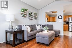 Welcome to this beautifully maintained raised bungalow offering the perfect blend of comfort, space, and convenience. Designed for easy living, the main level features two generous bedrooms and a full ensuite-privilege bath. The bright, open-concept kitchen and living area is enhanced by expansive windows and a stunning vaulted ceiling, creating an airy, light-filled atmosphere that feels both warm and inviting. The fully finished lower level extends your living space with two additional bedrooms, a second full bath, dedicated laundry area, and a spacious recreation room—ideal for guests, teens, hobbies, or a home office setup. Ideally situated on a premium lot backing onto a serene, private treed backdrop, this property offers exceptional privacy and a peaceful natural setting rarely found. The generous yard provides ample space for children and pets to roam and play, host gatherings, or simply relax and unwind outdoors. Meticulously maintained inside and out, this home is truly move-in ready. Complete with a double garage and convenient inside entry, it offers both practicality and comfort. An excellent opportunity for right sizer buyers or anyone seeking the ease of convenient one-floor living with the added benefit of finished lower-level space. (id:27)