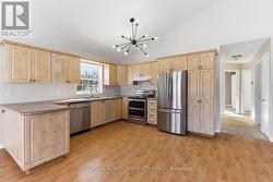Welcome to Beautifully maintained bungalow set on a spacious country lot, offering privacy and wide open views. This bright, open-concept home features a welcoming tiled foyer, soaring vaulted ceilings, large windows throughout the main living areas. The generous kitchen is equipped with ample cabinetry, modern appliances, and a functional layout overlooking the dining area with walk-out views of the yard - perfect for family living and entertaining. Comfortable bedrooms offer plenty of natural light and closet space, while the primary suite includes a private ensuite with a soaker tub and separate shower. The fully finished basement provides extensive additional living space with a large recreation area, extra rooms, and a full bathroom - ideal for guests, hobbies, or a growing family. An attached double car garage and expansive driveway offer plenty of parking, and the large lot provides endless outdoor potential in a peaceful setting. A fantastic opportunity to enjoy country-style living with generous interior space. (id:27)