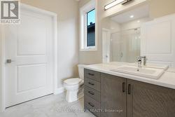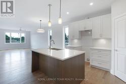 Welcome to Stirling Meadows! Talos is building in Brockville's newest community. This model home the "Amy" a Single Family Bungalow features a full Brick Front, exterior pot lights and an oversized garage with a 12' wide insulated door. Main floor has an open concept floorplan. 9' smooth ceilings throughout. Spacious Laurysen Kitchen with under cabinet lighting, crown molding, backsplash, pot lights and quartz countertops. Walk in pantry for added convenience. 4 stainless appliances included. Open dining/living with an electric fireplace. Patio door leads off living area to a covered rear porch. Large Primary bedroom with a spa like ensuite and WIC with built in organizer by Laurysen. Main floor laundry and an additional bedroom complete this home! Hardwood and tile throughout. Fully finished lower level with an additional bedroom, rec room and a full 4 piece bath. Central air, gas line for BBQ, designer light fixtures, upgraded 8' high and 36" wide interior doors, Garage door opener, washer and dryer and custom blinds included too! Immediate Occupancy available. Some Photos are virtually staged. Measurements are approximate. (id:27)