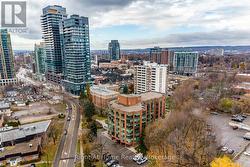 Location, Location! Within steps of Burlington's vibrant downtown, 2121 Lakeshore Road - "Village Gate" - stands as an exclusive boutique condominium. Welcome to Unit 603, a distinguished corner suite where luxury, light and views define every room. Featuring 9' ceilings, expansive windows, and beautifully scaled principal rooms, this residence blends contemporary elegance with soft, refined décor. Every detail has been thoughtfully curated to offer a serene, elevated living experience. The open-concept Living & Dining Room is ideal for both lavish entertaining & intimate evenings at home. A separate Den provides a tranquil space to unwind while taking in the view. The custom Kitchen showcases white cabinetry, quartz surfaces, a breakfast bar, glass tile backsplash, LED pot lights, & stainless steel appliances. Tucked away from the main living area, the Bedroom Wing offers discretion & calm. A charming Hall Library welcomes you into the private quarters. The Principal Bedroom Retreat impresses with a cozy sitting area framed by a bay window, custom walk-in closet, a spa-inspired 3-piece Ensuite featuring heated tile floors, vanity w/quartz counters, step-in shower & linen closet. A spacious Second Bedroom, also highlighted by its own bay window & stunning views, ensures guests enjoy comfort & style. The Main Bath mirrors the luxe finishes of the ensuite w/heated flooring, white cabinetry, quartz counters & a step-in shower. Additional Appointments: In-suite Laundry w/ stacked washer/dryer & storage. Engineered hardwood floors; custom blinds; tall interior doors; closets w/custom organizers, two linen closets. Two Parking Spaces. Locker. The building offers FOB-secured lobby access, elevators & visitor parking. Unmatched Downtown lifestyle: cafés, boutiques, Performing Arts Centre, fine dining, Art Gallery, Waterfront Trail, plus nearby hospital, transit, recreation, shopping & major highways. Unit 603 at 2121 Lakeshore Road, a perfect Home! (id:27)