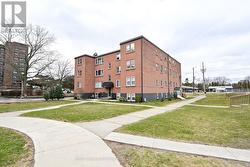 Dont wait and miss your opportunity to call this unit HOME! Welcome to this bright and spacious, 855sqft, 2 bedroom corner unit with lots of windows and lots of natural light, in a fantastic and highly desirable central Burlington location, close to shops, dining, parks, trails, downtown Burlington, hospital, highways, rec/community centre, library, public transit, and endless other great amenities. This unit features a kitchen with white cabinetry, double sink, backsplash, lots of cabinet and countertop space including the mobile island/cupboard, and a window, a large living room with a beautiful wood feature wall and large windows, a separate dining room off of the kitchen, 2 spacious bedrooms including the primary bedroom with crownmoulding, an updated 4-piece bathroom with new vanity, porcelain sink, plumbing fixtures, lighting, tub/shower wall tile, and a window, quality luxury vinyl floors and 5.5 baseboards throughout, and fresh paint throughout. The complex conveniently backs on to Centennial Walking/Biking Trail. The building is very quiet and well maintained. The building amenities also include a storage locker, visitor parking, and onsite laundry room. The unit comes with 1parking space, with the potential to rent a 2nd spot if needed. The low monthly maintenance fee includes PROPERTY TAX, heat, water, parking, locker, building insurance, exterior maintenance, and visitor parking. No pets (unless service animal), and no rentals/leasing. Welcome Home! (id:27)