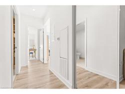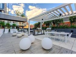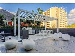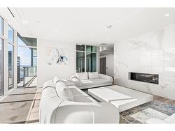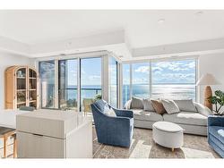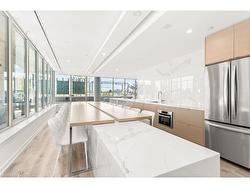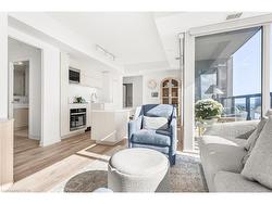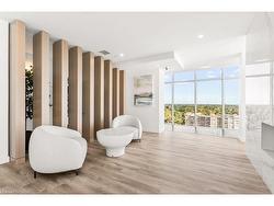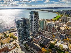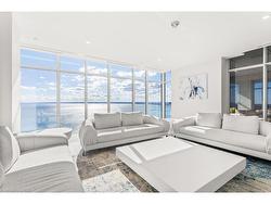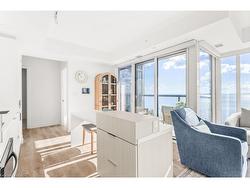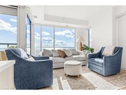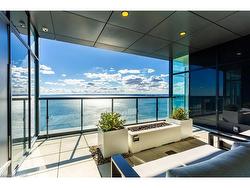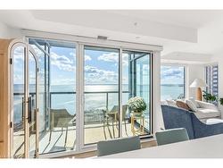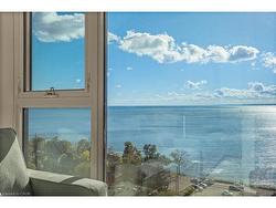 Experience luxury lakeside living at its finest in this stunning 2-bedroom, 2-bath suite at the iconic Nautique Lakefront Residences in the heart of downtown Burlington. Floor-to-ceiling windows fill the space with natural light and frame spectacular panoramic views of the lake and vibrant cityscape. The open-concept layout features a designer kitchen with integrated appliances, quartz countertops, and modern cabinetry that seamlessly blend style and function. The spacious island doubles as a dining space, perfect for entertaining or casual meals. The primary bedroom offers ample closet space with custom built-ins and a spa-inspired ensuite, while the second bedroom is ideal for guests or a home office. Enjoy the convenience of in-suite laundry and automatic custom blinds. Step outside to your private balcony and take in the ever-changing waterfront views. Enjoy world-class amenities including a state-of-the-art fitness centre, resort-style outdoor pool with cabanas, hot tub, yoga studio, fire pits, barbecue terrace, and elegant resident lounge/party room with dining area and kitchen. Concierge service, executive meeting rooms, bike storage, secure underground parking, and a private storage locker complete this exclusive lifestyle package. Located steps to the lake, restaurants, boutiques, and the waterfront trail, this is downtown Burlington living at its most sophisticated.