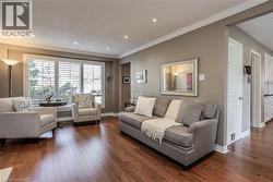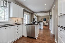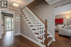 Welcome to your forever home in the quiet, exclusive Tyandaga community—one of Burlington’s most sought-after neighbourhoods! Surrounded by mature trees, miles of trails just down the road, parks and just minutes to downtown, the lake, Tyandaga Golf Course and major highways, this location offers the perfect balance of nature and convenience. This beautiful 2-storey detached home sits on a stunning, professionally landscaped pool-sized lot and offers over 3,122 sq ft of total finished living space. With a double car garage (inside entry) and driveway parking for four, there's room for the whole family and guests. Step inside to find rich hardwood floors throughout, a stylish eat-in kitchen with granite counters, stainless steel appliances, subway tile backsplash, pot lights and a breakfast bar—ideal for casual family meals. The sunlit living room with a cozy wood-burning fireplace flows seamlessly from the kitchen, while a separate dining room provides space for special gatherings. The oversized family room is a true retreat—featuring a gas fireplace, hardwood floors and a walkout to a private balcony overlooking the yard. Upstairs, the spacious primary suite offers a 4-piece ensuite, while the additional bedrooms are generously sized and share an updated 3-piece bath. The fully finished lower level adds even more living space with engineered hardwood floors—perfect for a rec room, gym, or home office. The backyard is your private oasis, fully fenced with interlock patio and lush gardens—ready for summer living! This is the lifestyle you’ve been waiting for. (id:27)