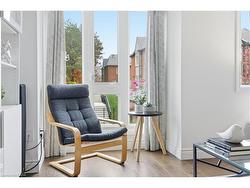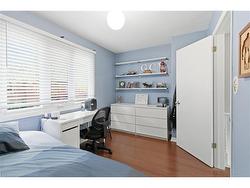 Bright, updated end unit featuring an open-concept main floor with hardwood floors and newer windows. Kitchen offers stainless steel appliances, ample storage, and patio doors to a private patio. Upper level has two bedrooms and a 4-piece bath. Finished lower level includes a family room, 2-piece bath, and large laundry/storage area. Overlooks green space with no neighbors beside for added privacy. Move-in ready!
