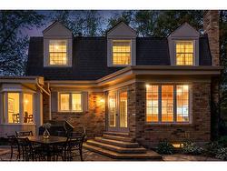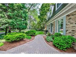 Welcome to 206 Rossmore Boulevard, a charming and timeless residence located in the prestigious and highly sought-after neighborhood of Roseland. South of the Roseland Tennis Club, and on the on south end of quiet Rossmore just before Lakeshore Road. The quiet boulevard part of the street is steps to Sioux Lookout and Port Nelson Park on the lake for peaceful water access. Set on a beautifully landscaped lot spanning over 10,000 sq ft, this home combines classic curb appeal with thoughtful upgrades. Mature trees, a circular stone driveway, and inviting outdoor spaces, including a Wiarton Quarry Rock patio, koi pond, and private fenced yard, create a serene retreat just steps from the Lake. This 2-storey, 4-bedroom home offers over 3,100 sq ft of finished living space across all levels. Inside, you are welcomed by a warm foyer with wide plank floors leading to a bright living room and elegant dining room with custom window coverings. The family room, anchored by a wood-burning fireplace, and the kitchen with stainless steel appliances (new stove & fridge 2019, dishwasher 2020) make for the perfect blend of comfort and functionality. The kitchen offers clean design and a nice breakfast area overlooking the back yard. The peaceful large side yard is a Muskoka-like setting with quiet privacy and no neighbour views within South Rossmore. Upstairs, the primary suite and two additional spacious bedrooms provide comfort and natural light through upgraded windows (2019). The lower level features a finished recreation room and an additional bedroom, offering other living options for a growing family or guests.Recent updates include a new furnace and air conditioner (2019), new washer (2020) and dryer (2025), along with new windows (2019). Enjoy the serene lifestyle of this home with an easy walk to the lake, downtown Burlington, shops, schools, and minutes to bike trails along the waterfront. Schedule your private showing to experience the lifestyle this home has to offer.