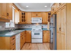 Welcome to 2237 Joyce Street located in a family friendly quiet neighbourhood. Tremendous value in this bungalow with central core location close to schools, downtown, the Go Station and major highways. The front entrance welcomes you with freshly painted walls throughout and beautifully refinished hardwood floors. The spacious Living Room is flooded with light from oversized windows. The adjoining Kitchen features a separate Dining area perfect for family gatherings. Maple cabinetry and a custom built-in hutch offer a multitude of storage space. Three spacious Bedrooms are located on the main floor, with one bedroom featuring patio doors overlooking the backyard. The main floor 4 piece bathroom has been recently updated. The separate side entrance takes you down to the lower level which has been updated with vinyl plank flooring and pot-lights. The family room includes a kitchen area with gas line for a stove and a fan hookup connection. The spacious bedroom includes double closets with a 4 piece bathroom just down the hall. This layout offers the potential for an in-law suite, teen hangout, or look at financing incentives offered by the City of Burlington to create an Additional Dwelling Unit. The private yard backs onto a field and offers a quiet private space for children to play or adults to relax. The spacious lot includes an oversized driveway with plenty of parking options and single garage. Quick closing is available to make this your new home, it's ready to move in!