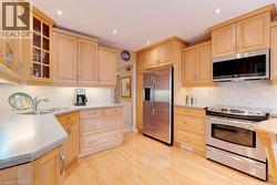 welcome to this beautifully maintained Mattamy-built two-story home in the highly desirable Tyandaga neighbourhood, offered for sale by the original owner. This beautiful residence features 4+1 spacious bedrooms and 2.5 updated baths, perfectly designed for family living and entertaining. As you step inside, you are greeted by a large foyer that leads to an inviting main floor layout. The cozy family room is perfect for relaxation, featuring wooden ceiling beams, a charming reclaimed brick wood-burning fireplace and sliding doors that open to your backyard, creating a seamless flow between indoor and outdoor spaces. The expansive eat-in kitchen is a chef’s delight, offering ample counter space and storage for all your culinary needs. Adjacent to the kitchen, a separate dining room provides an elegant setting for family meals and holiday gatherings. Glass french doors to the generous sized living room, a convenient laundry room with laundry sink and closet help simplify daily tasks. Retreat to the massive primary bedroom, a true sanctuary that boasts a luxurious four-piece en-suite and a generous walk-in closet, providing plenty of room for your wardrobe. Three additional well-sized bedrooms offer flexibility for family, guests, or a home office. Updated bathrooms throughout the home showcase modern finishes, ensuring comfort and style. The finished basement adds even more value, providing a versatile room that can serve as an office or an extra bedroom accommodating your unique lifestyle needs, a cold cellar and large storage room/workshop. With a double car garage featuring interior entry. The fully fenced rear yard features a composite 2 tier deck and gas bbq/gas line. This beautiful Tayandaga home combines elegance, comfort, and functionality. Don't miss this opportunity to make this wonderful home yours and discover the perfect place to create lasting memories! (id:27)