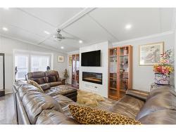 Welcome to 4449 Milburough Line, #28 Ash Street in Burlington — a beautifully maintained 2-bedroom, 2-bathroom home located in the quiet and friendly community of Lost Forest Park. Less than five years old, this modern home features an open-concept layout with an oversized two-tone custom kitchen island, perfect for entertaining. The spacious kitchen offers ample storage, while the separate dining area and built-in electric fireplace create a warm and inviting atmosphere. A dedicated office space provides privacy for work or hobbies, and pot lights throughout add a bright, contemporary touch.Step outside to a stunning Lumon-enclosed 3-season sunroom, perfect for relaxing, hosting guests, or stargazing on clear nights. Lost Forest Park offers peaceful surroundings and a strong sense of community, complete with amenities like an in-ground swimming pool, horseshoe pits, and beautifully landscaped grounds.Whether you’re looking to downsize or simply enjoy a tranquil lifestyle with the convenience of modern updates, this home offers the perfect year-round retreat.