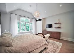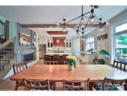 Welcome to one of the most unique properties in the sought-after Aldershot neighbourhood! This custom-built home offers 4,800 sq ft of finished living space on a rare 0.5-acre ravine-front lot, offering total privacy and a serene, natural setting. Designed and built by the owner (a custom home builder), the home was thoughtfully positioned to capture ravine views from nearly every room, with the 3-car garage located at the back. A grand two storey entry features a barn board accent wall, two-sided gas fireplace, elegant music room, and a stunning open-riser staircase. Soaring 9-ft ceilings rom basement to 2nd floor add to the spacious feel. Enjoy 4+1 bedrooms and 4+1 baths, with vaulted ceilings in 3 bedrooms. A sun-drenched 4-season sunroom with pine vaulted ceiling, gas fireplace, and floor-to-ceiling glass offers panoramic views of the ravine and saltwater pool. Quartz countertops and custom cabinetry are found throughout, along with site-finished hardwood, built-in speakers, and large windows bringing in natural light and lake glimpses. The expansive second-floor laundry room includes built-ins and a dedicated sewing desk. The finished basement with separate side entrance provides in-law suite.