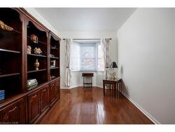 Welcome to Tyandanga — a serene Burlington neighbourhood known for mature trees, green space, wooded ravines, huge parks & the prestigious Tyandaga Golf Course. Nature lovers will appreciate the nearby Niagara Escarpment, Bruce Trail & conservation areas offering endless outdoor adventure. Enjoy this quiet, established community that feels tucked away in nature, yet is close to shopping, restaurants, & services, & offers quick access to the QEW & 407 ETR for commuters. This highly desirable end-unit townhome is part of a small, beautifully maintained enclave of only 34 homes. Set on a premium private lot, it features a rarely offered attached double garage with inside entry, 2 bedrooms, 2.5 bathrooms, extra windows, & approx. 1,629 sq. ft. of light-filled living space plus a professionally finished basement. Hardwood floors on 2 levels, French doors, 2 gas fireplaces, & California shutters contribute to timeless elegance & there is fresh paint in the entrance, kitchen, & 2 bedrooms. The spacious living room, centred around a gas fireplace, opens to a private patio surrounded by lush gardens, brick privacy walls, a mature tree, & metal fencing with a gate access to green space. French doors connect the living & dining room — perfect for formal entertaining. The bright white kitchen offers ample cabinetry, an upper china cabinet, Corian counters, white appliances (including a new stove), & a breakfast area. The family room with a gas fireplace is located on the mid-upper level; 2 bedrooms & 2 full baths are on the upper level. The freshly painted primary suite features large windows with California shutters, a walk-in closet & a 4-piece ensuite with a soaker tub & separate shower. The finished lower level includes a spacious recreation room with pot lights & a large laundry room with extensive cabinetry & a new Maytag washer & dryer.