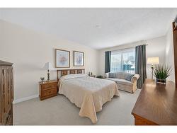 Welcome to this beautifully maintained second-storey, one-level living, town home featuring 2 spacious bedrooms plus 2 full bathrooms. Primary bedroom with walk-in closet and a 4 piece ensuite (tub/shower combo). Second bedroom w/3 piece ensuite (walk-in shower). Numerous windows throughout flood this open concept living area in a cheerful, natural, warm atmosphere. Spacious living room/dining room. Lovely kitchen offers a breakfast bar, pantry, as well as generous extra storage! South facing private balcony (gardener’s delight) is conveniently accessible from dining room plus primary bedroom - extending your living space! Also, enjoy your own personal in suite laundry/utility room! Exclusive-use garage, with an additional parking space and private storage room. Near all amenities! Walk to: waterfront, parks, hospital, Mapleview mall, public transit, schools etc. Easy access to the QEW (Toronto & Niagara bound), 403 and 407. Proudly owned home, meticulously maintained by the same PET FREE & SMOKE FREE owner for over 27 years. This is a special home ready for you! Possession date flexible.