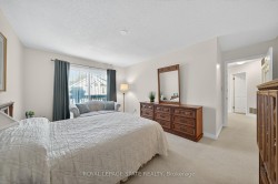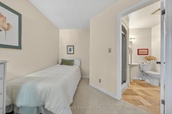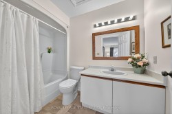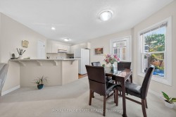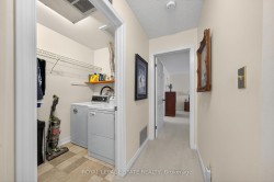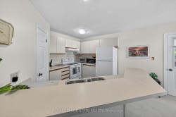 Welcome to this beautifully maintained second-storey, one-level living, town home featuring 2 spacious bedrooms plus 2 full bathrooms. Primary bedroom with walk-in closet and 4 piece ensuite (tub/shower combo). Second bedroom w/3 piece ensuite (walk-in shower). Numerous windows throughout flood this open concept living area in a cheerful, natural, warm atmosphere. Spacious living room/dining room. Lovely kitchen offers a breakfast bar, pantry, as well as generous extra storage! South facing private balcony (gardener's delight) is conveniently accessible from dining room plus primary bedroom - extending your living space! Also, enjoy your own personal in suite laundry/utility room! Exclusive-use garage, with an additional parking space and private storage room. Near all amenities! Walk to: waterfront, parks, hospital, Mapleview mall, public transit, schools etc. Easy access to the QEW (Toronto & Niagara bound), 403 and 407. Proudly owned home, meticulously maintained by the same PET FREE & SMOKE FREE owner for over 27 years. This is a special home ready for you! Possession date flexible.