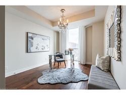 Wake up to breathtaking lake and park views every morning in this beautifully updated suite at Bunton’s Wharf, one of downtown Burlington’s most sought-after waterfront residences. Offering 1,407 sq. ft. of refined living, this 2-bed, 2-bath condo blends luxury, comfort, and an unbeatable location along the shores of Lake Ontario. The bright, open-concept living and dining areas feature 9 ft ceilings, LED pot lights, crown moulding, and rich maple engineered flooring. Step onto your private balcony to enjoy serene views of Spencer Smith Park and the waterfront, the perfect backdrop for morning coffee or sunset unwinding. The gourmet kitchen is a standout, complete with high-end Fisher & Paykel appliances, a two-drawer dishwasher, granite counters, breakfast bar seating, and a generous walk-in pantry with in-suite laundry. Both bedrooms offer walk-in closets, oversized bay windows, and stunning lake views, while the two spa-inspired bathrooms provide comfort and elegance. Enjoy resort-style amenities, including two fitness centres with a golf simulator, a rooftop heated pool and terrace with BBQs, a party room, a games room, sauna, and concierge service. This unit includes underground parking and a same-floor locker, offering exceptional day-to-day convenience. Steps to Spencer Smith Park, the Burlington waterfront trail, boutique shopping, fine dining, cafés, and Joseph Brant Hospital, all with quick access to the QEW, 407, and GO Transit. Two small pets (up to 20 lbs each) are permitted.