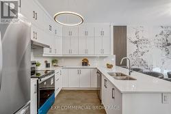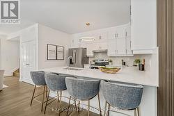 Brand-new executive town home never lived in! This stunning 1,799 sq. ft. home is situated in an exclusive enclave of just nine units, offering privacy and modern luxury. Its sleek West Coast-inspired exterior features a stylish blend of stone, brick, and aluminum faux wood. Enjoy the convenience of a double-car garage plus space for two additional vehicles in the driveway. Inside, 9-foot ceilings and engineered hardwood floors enhance the open-concept main floor, bathed in natural light from large windows and sliding glass doors leading to a private, fenced backyard perfect for entertaining. The designer kitchen is a chefs dream, boasting white shaker-style cabinets with extended uppers, quartz countertops, a stylish backsplash, stainless steel appliances, a large breakfast bar, and a separate pantry. Ideally located just minutes from the QEW, 407, and Burlington GO Station, with shopping, schools, parks, and golf courses nearby. A short drive to Lake Ontario adds to its appeal. Perfect for down sizers, busy executives, or families, this home offers low-maintenance living with a $349.83/month condo fee covering common area upkeep only, including grass cutting and street snow removal. Don't miss this rare opportunity schedule your viewing today! Tarion Warranty! (id:27)
