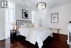 Welcome to the highly sought-after 360 Pearl—a premier building in the heart of downtown Burlington with gorgeous lake and escarpment views in every direction. This beautifully updated 2-bed, 2-bath suite offers an open-concept layout, floor-to-ceiling windows, and 9 ft ceilings, creating a bright and sophisticated living space. The kitchen impresses with custom cabinetry, pot drawers and slide-out shelving, stainless steel appliances which include a gas stove, a generous island for entertaining, and granite countertops. The Great Room is wrapped in windows, showcasing lake views and providing a seamless walkout to your expansive wrap-around balcony. The primary suite offers its own balcony access, a spacious walk-in closet with built-in organizers, and a spa-inspired ensuite with a large glass shower and extended vanity. The second bedroom features stunning lake views and a custom Murphy bed—perfect for easily transitioning between a home office and guest space. A stylish 4-piece bathroom with granite finishes and convenient in-suite laundry complete the interior. This unit truly shines for those who love to entertain. The building offers exceptional amenities including a rooftop terrace with BBQs, state-of-the-art gym with a steam room, party room, games room, movie theatre, and 24-hour concierge/security. Walk to Burlington’s best restaurants, boutique shops, Spencer Smith Park, and waterfront events. Includes 1 parking space (Level B #4) and 1 locker (Level B #57). (id:27)