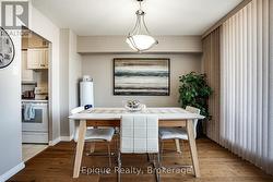 Enjoy an upscale, virtually all-inclusive and carefree lifestyle in this well-established North Burlington community, thoughtfully designed for active mature adults.This spacious 1 bedroom plus versatile den (ideal as a guest bedroom or home office) offers 1.5 baths, abundant natural light, and stunning escarpment views from a 20 ft. private balcony. Meticulously maintained, the home features engineered hardwood floors, a generous living room with walk-out to the balcony, a dedicated dining area with picturesque views, and a bright eat-in kitchen with excellent counter space. Additional conveniences include in-suite laundry and an in-suite storage room.Condo fees offer exceptional value and include all utilities-heat, hydro, water, central air conditioning, Bell Fibe TV, and a portion of internet service-as well as one underground parking space. Residents enjoy an impressive suite of amenities geared toward an active lifestyle: outdoor pool, tennis courts, exercise room, men's and ladies' change rooms with sauna, party room, workshop, reading room/library, guest suite, ample visitor parking, all supported by an on-site building manager. Set within a safe, friendly, and vibrant community, this location offers unbeatable walkability to shopping, transit, banks, Tim Hortons, Shoppers Drug Mart, parks, and scenic trails. (id:27)