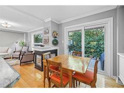 Looking for the sweet spot between “too much house” and “not enough space”? This townhome in Barrington Square might be your Goldilocks moment. Set at the back of the complex for privacy, you’ll find a double garage and driveway… so yes, you can both park inside! Inside, the owner’s meticulous care shows at every turn: hardwood floors, crown moulding, updated kitchen with stainless appliances including induction stove. Walk-out onto the patio perfect for summer dinners under the electric awning while you cook on the gas line BBQ. Upstairs, the primary suite feels like a retreat with vaulted ceilings, walk-in closet and large spa-like ensuite. A second bedroom with its own ensuite access, plus a third bedroom currently used as a den, gives you flexibility without the fuss. Laundry is conveniently upstairs too! The finished basement adds even more living space with a third full bath but doesn’t sacrifice the great storage space either. Lawn and snow care are included so your weekends are free for Central Park strolls or Peach Coffee Co. coffee runs.